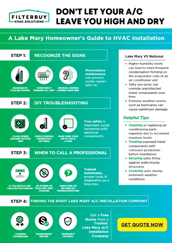 Finding the right HVAC installer in Lake Mary starts with licensed, experienced local contractors. FilterBuy’s directory highlights professionals we’ve vetted through hundreds of local projects. Focus on quality installation, efficiency, and honest pricing to save on energy bills and ensure long-term comfort.